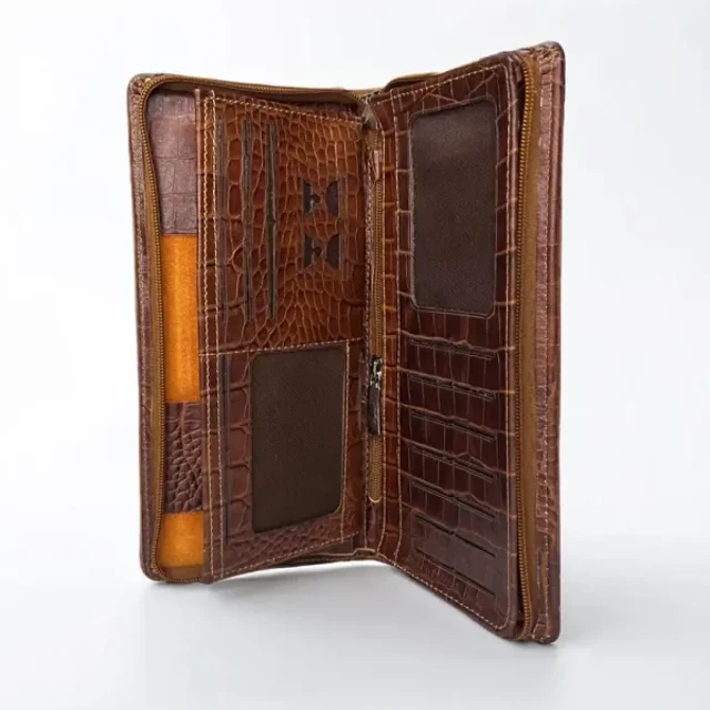 کیف چرمی مدارک اسپرت مدل دسته چکی فایلرکیف چرمی مدارک اسپرت مدل دسته چکی فایلر، محصولی با طراحی منحصربهفرد و کیفیت بالا است که ترکیبی از زیبایی و کاربرد را ارائه میدهد. این کیف از چرم مرغوب با بافت برجسته شبیه پوست کروکودیل ساخته شده و برای نگهداری مدارک، دستهچک و کارتهای بانکی طراحی شده است.