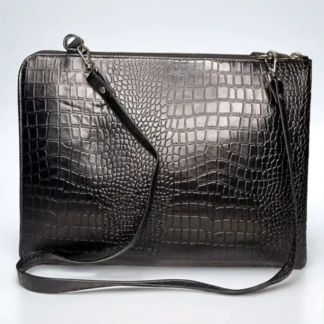 کیف چرمی که از چرم مصنوعی با طرح پوست کروکودیل ساخته شده است. طراحی منحصر به فرد این کیف به گونهای است که دارای دو دسته میباشد: یک بند دوشی که بالای کیف قرار دارد و یک دسته دیگر در کنار کیف قرار میگیرد.کیف چرمی فولدری اسپرت مدل لوکس دارای طراحی شیک و مدرن است که مناسب برای استفاده روزمره و همچنین موقعیتهای رسمی میباشد. با توجه به کیفیت بالای ساخت و طراحی منحصر به فرد، این کیف انتخابی عالی برای افرادی است که به دنبال ترکیب استایل و کارایی هستند.