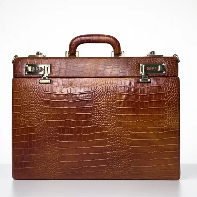 کیف چرمی اداری مردانه سامسونیت مدل پریستژاین کیف چرمی اداری مردانه سامسونیت با طراحی بینظیر و استفاده از چرمی طبیعی با الگوی پوست کروکودیل ساخته شده است. رنگ قهوهای غنی و طراحی دقیق آن، این کیف را به گزینهای عالی برای استفاده روزانه در محیطهای کاری و جلسات رسمی تبدیل کرده است. دسته محکم و مقاوم کیف، حمل و نقل آن را آسان و راحت میکند. این کیف با استحکام بالای بدنه و چارچوب محکم، همواره ظاهری شیک و لاکچری را حفظ میکند.ویژگیها:طرح: کیف چرمی اداری مردانه سامسونیت مدل پریستژ